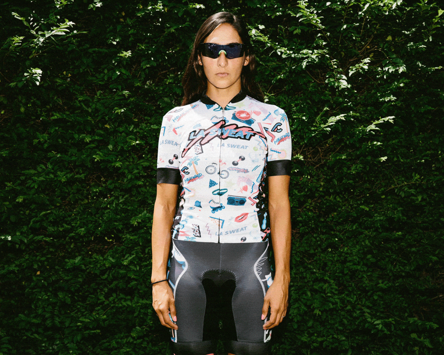 Moving away from the 90's workout vibe I wanted to design a kit that was sporty but elegant. Think cycling meets Beverly Hills. It was an effort to prove that "you can be feminine and strong as hell." Which became the team motto. I commissioned Alex Ostroy to work his illustrating magic to make a kit inspired by Chanel, Versace and Pucci.