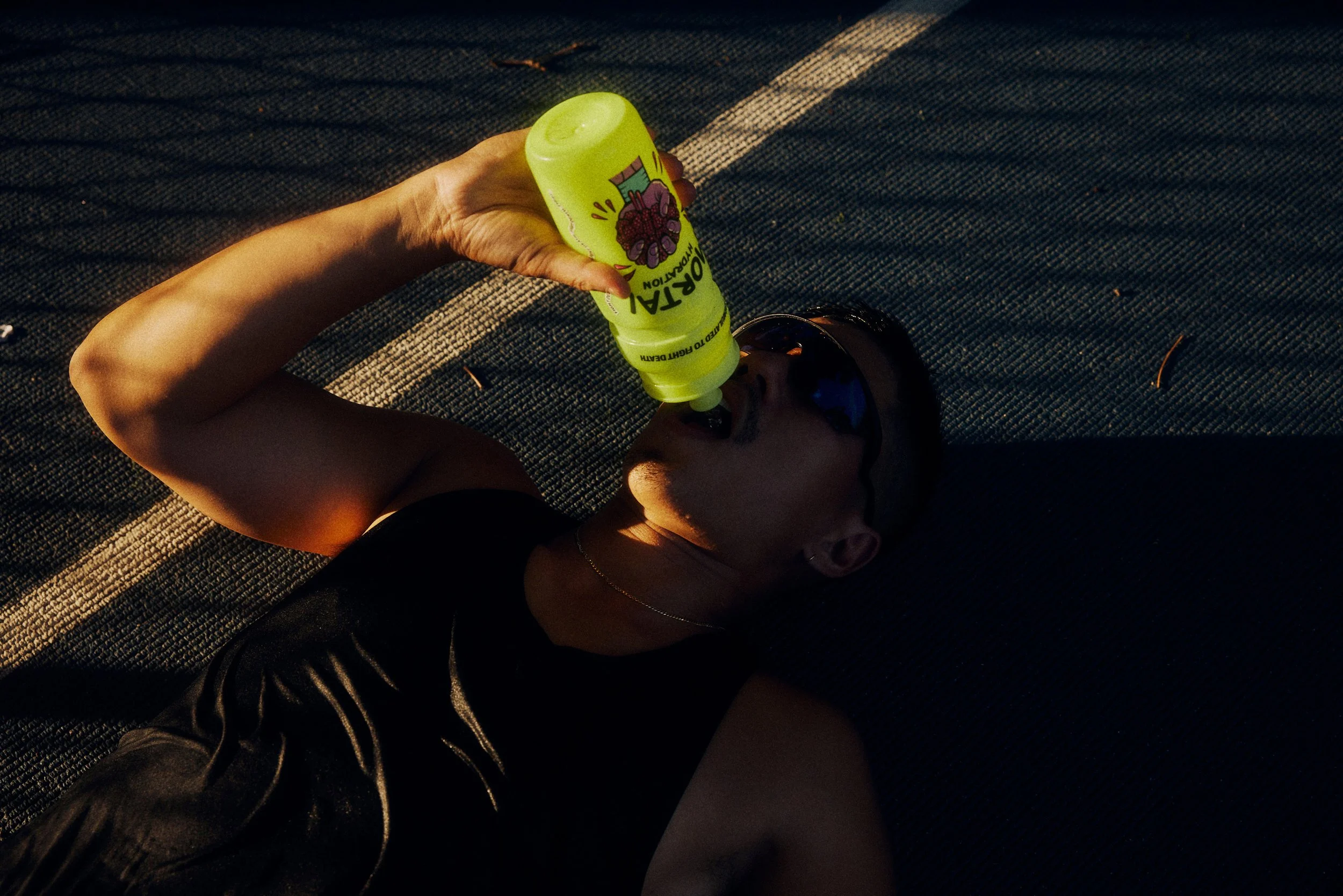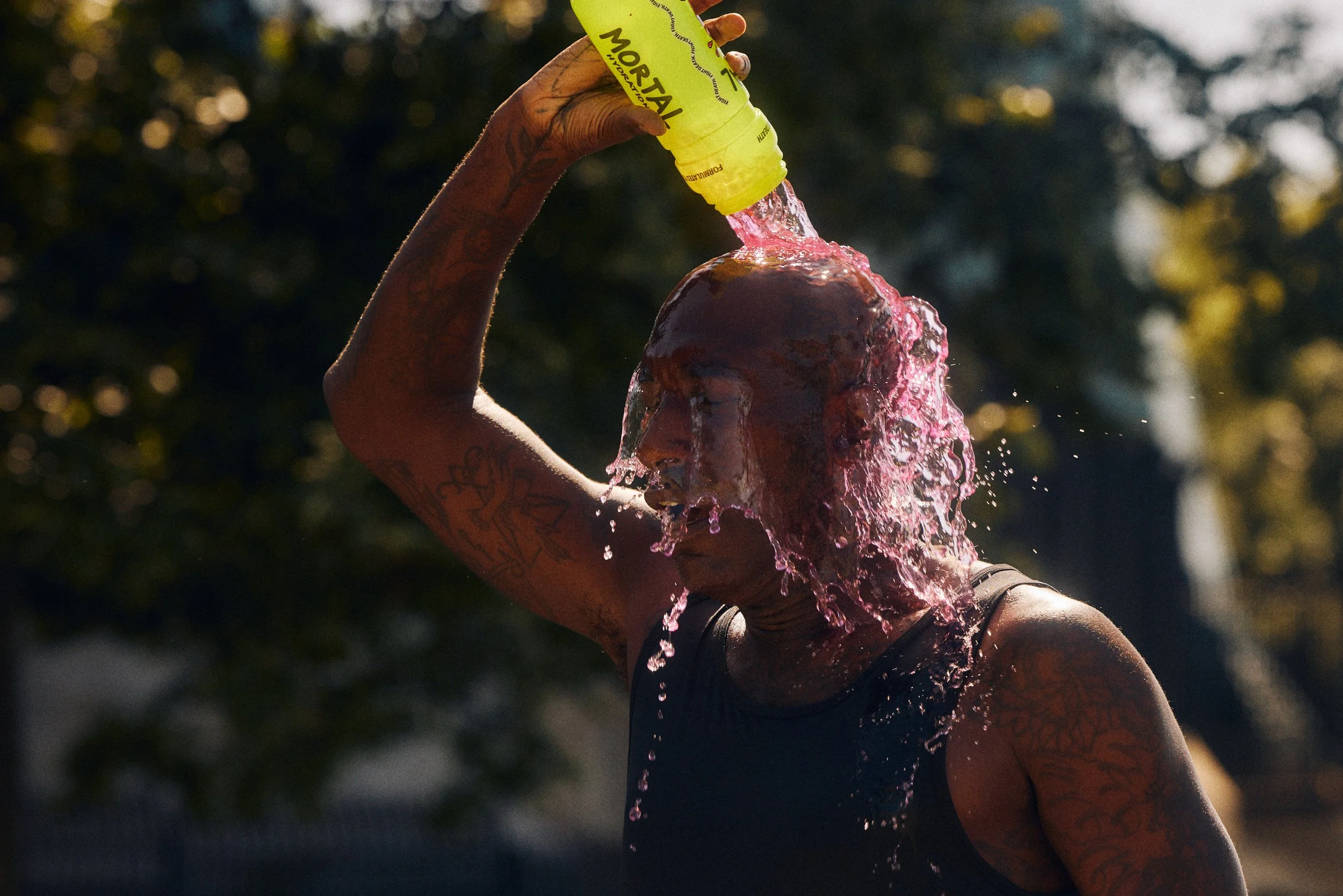 Mortal Hydration launched with a splash. As my own brand, when we got the greenlight to do a shoot for it I knew it had to be something that would stand out and make Adobe Photoshops' generative expand uncomfortable. We came up with the idea of the feeling you get when you’re DONE, DUSTED AND THIRSTY FOR THE NEXT ONE and worked to capture that with a seriously refreshing set of athletes.